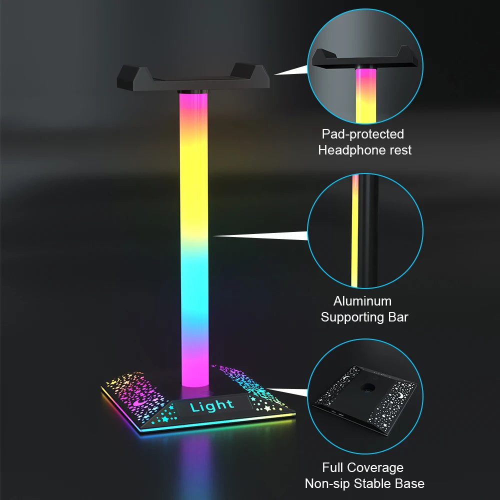 Elevate your setup with this LED Gaming Headset Stand — featuring dynamic RGBIC lighting, USB power, and a sleek design to organize your gear and light up your gaming space in style.