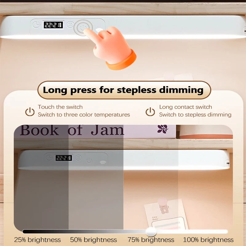 Magnetic Clock Desk Lamp – USB Rechargeable LED Light with Stepless Dimming